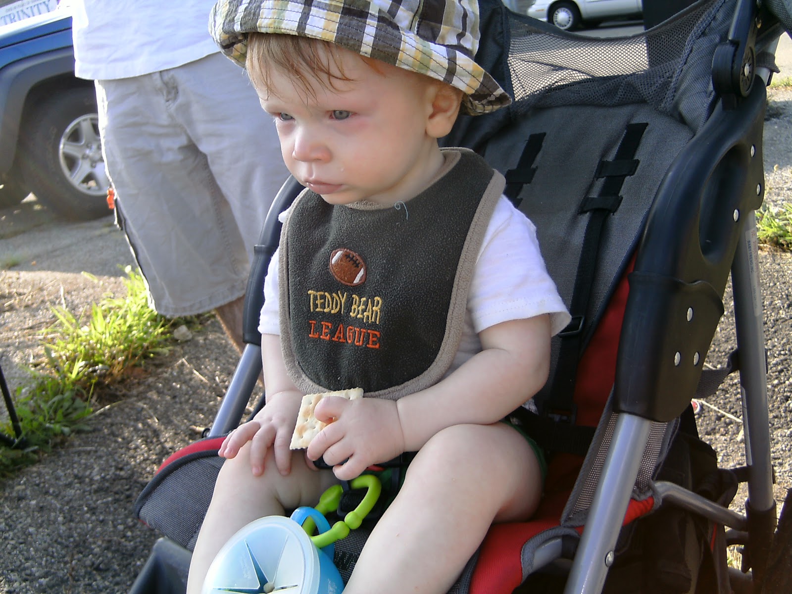 Collin had his first tootsie roll in the picture below. They started the parade with a 5 k run. The parade started during Collin's nap time, and he caught a quick nap before it started, but he was a tired happy little boy.